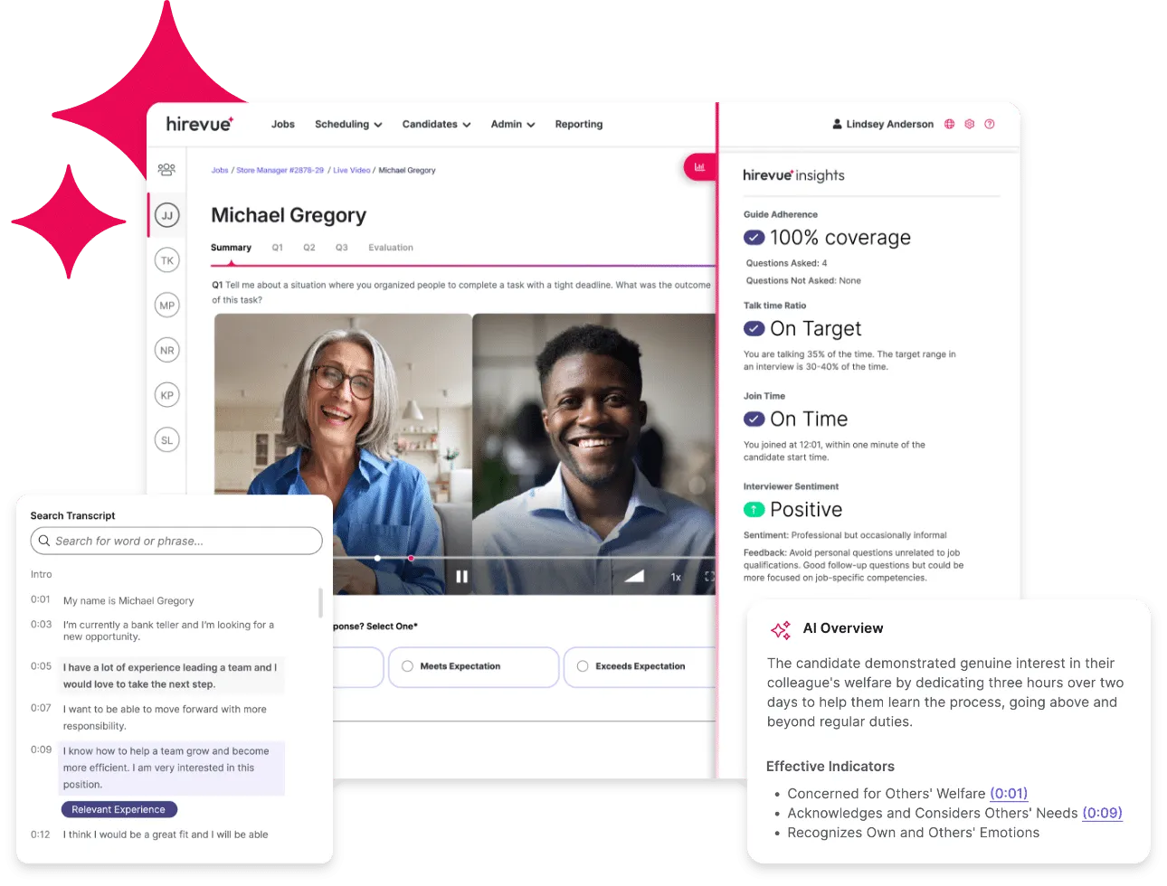 Build great teams faster with advanced AI that instantly generates smart transcripts, allows you to tag relevant experience, and review candidate competencies. Real-time AI summaries turn every interview into a chance for instant, informed hiring decisions for your entire team.