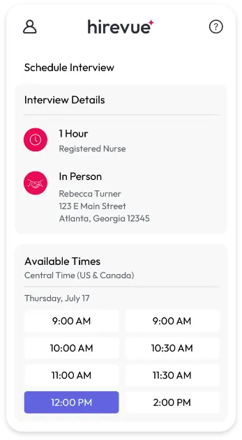 Hirevue’s automated interview scheduling software eliminates phone tag, allowing hiring teams to focus on candidates and their potential. Set role-based rules to streamline coordination and automatically invite qualified candidates to the next step using our interview scheduling tools.
