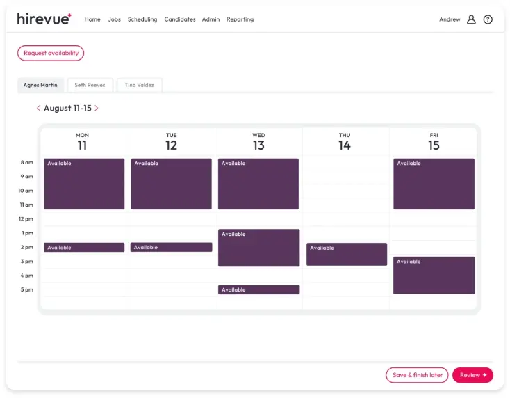 Easily add your and your team’s open times and our automated interview scheduling tool handles the rest.