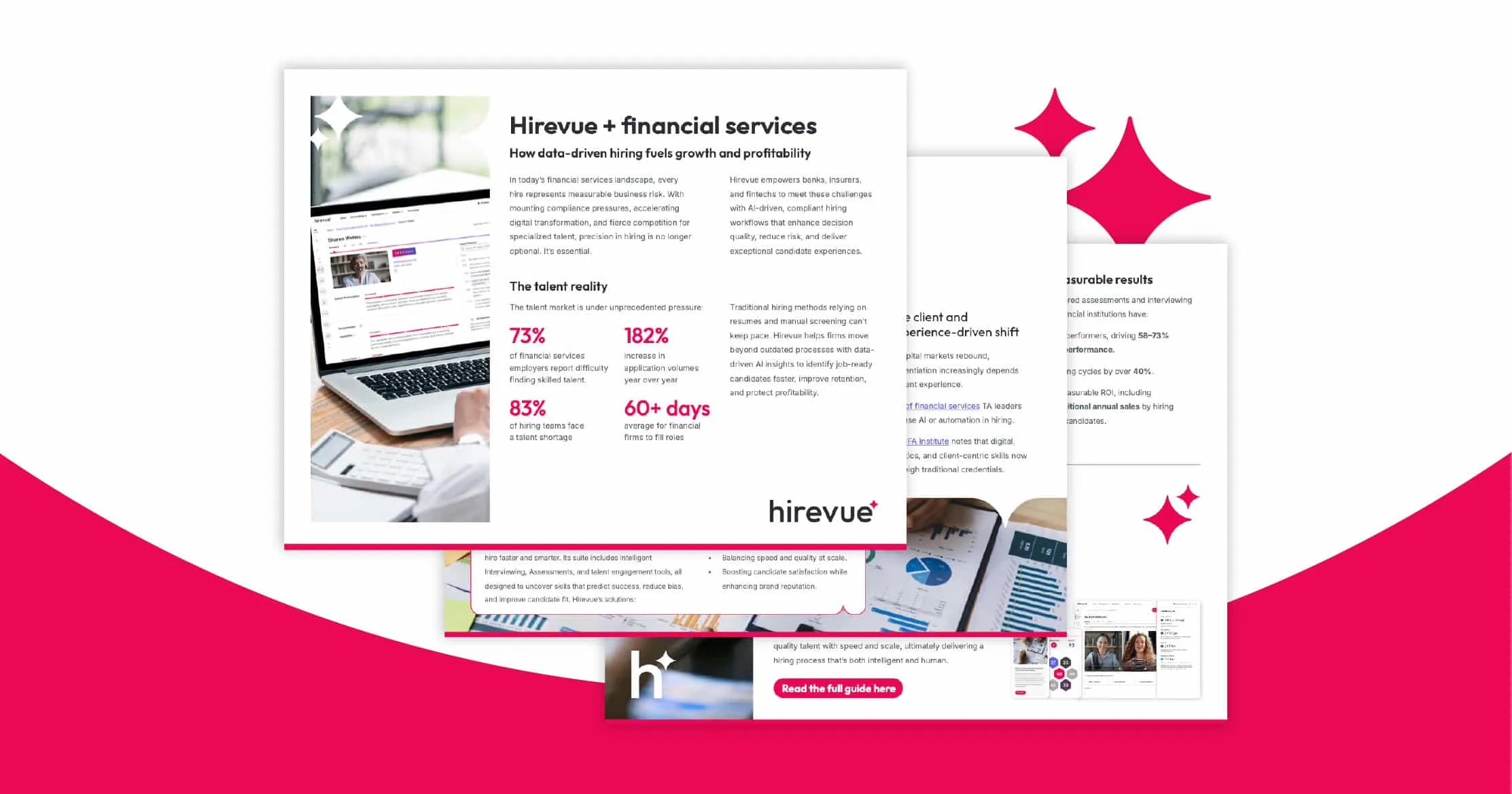 Discover how Hirevue is helping financial institutions turn hiring into a strategic advantage. In a market defined by compliance pressure, digital disruption, and escalating competition for talent, every hiring decision carries real financial risk.